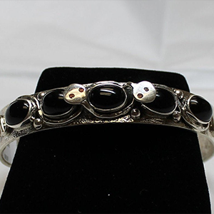 Black Onyx and Sterling Silver Snake Motif Cuff Bracelet