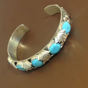 Native American Sterling Silver Handmade Turquoise Cuff Bracelet