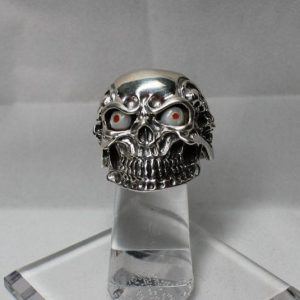 Navajo Cast Skull Ring Sterling Silver w/Mop & Coral Size 12.5